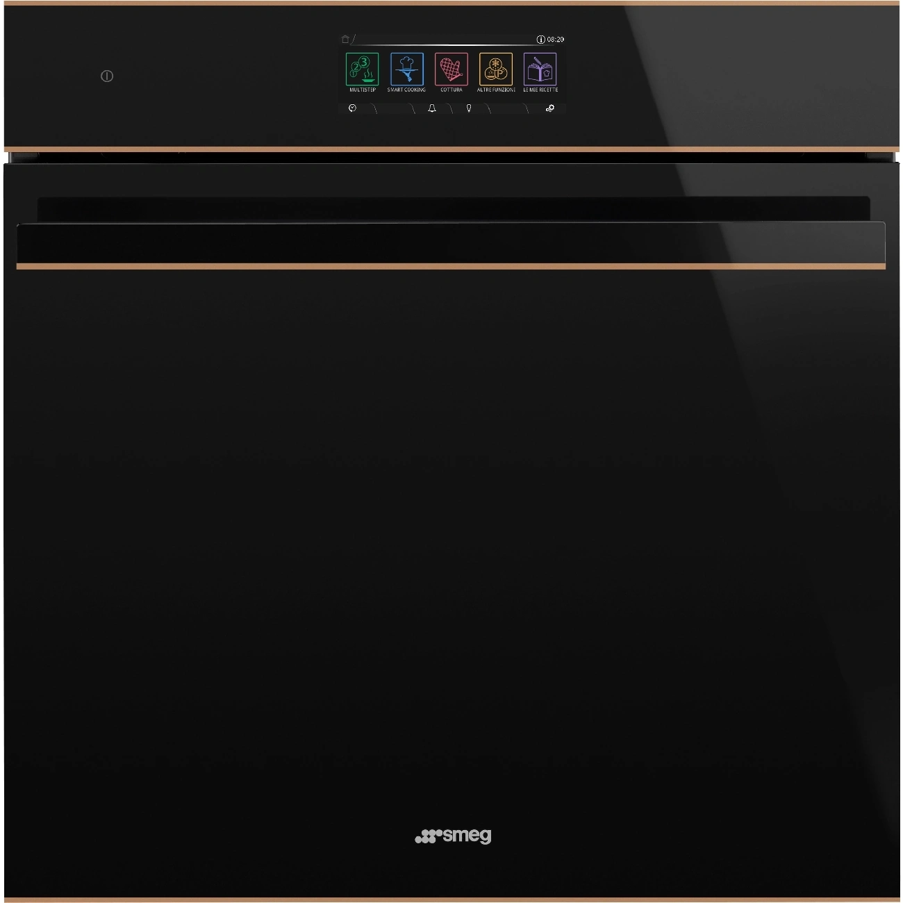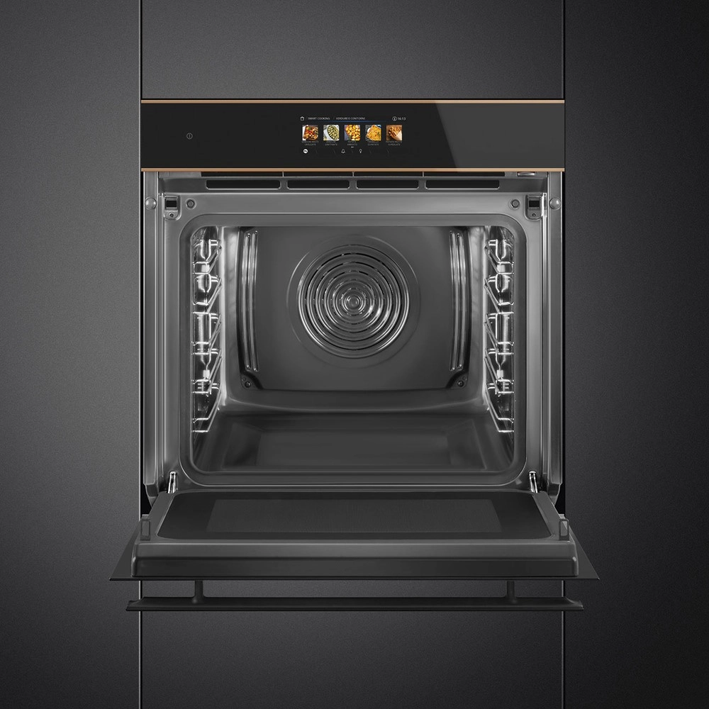 Духовой шкаф SMEG Dolce Stil Novo SO6606APNR — это сочетание современного дизайна и высоких технологий, воплощенное в элегантной модели с черным стеклом и элементами из меди. Эта премиальная модель от SMEG из коллекции Dolce Stil Novo представляет собой идеальный баланс стиля и функциональности, который подчеркнет уникальный интерьер вашей кухни.