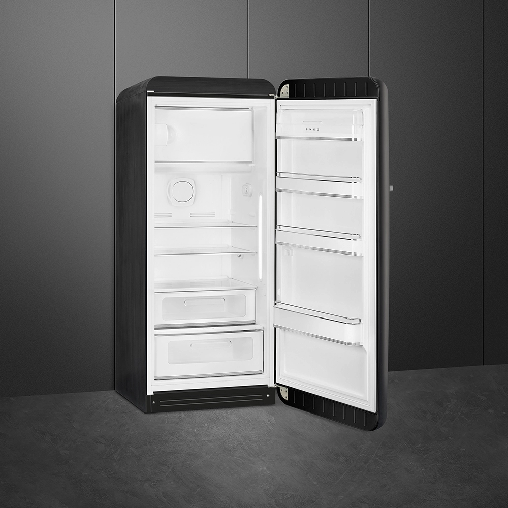Холодильник SMEG FAB28RDBB5 — это элегантное и стильное решение для вашего кухонного пространства, которое сочетает в себе ретро-дизайн и современные технологии. С его ярким черным цветом и характерными округлыми формами, этот холодильник станет настоящим акцентом на вашей кухне, добавляя нотку шарма и уникальности. Он идеален для малых и средних кухонь, обеспечивая достаточно места для хранения ваших продуктов и напитков.