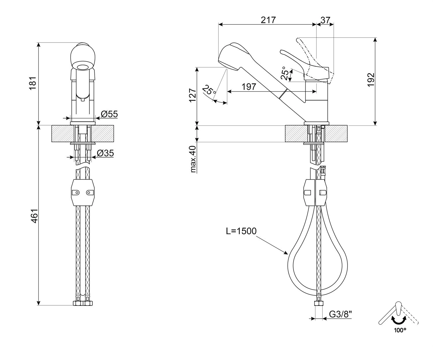 Однорычажный смеситель Smeg MD10AV3 выполнен в цвете хрома. Излив, поворачивающийся на 100 °, способствует повышению функциональности модели. Помимо этого излив выдвигается, обеспечивая комфортное наполнение высоких емкостей водой. Рычаг управления плавно и быстро переключает режимы работы.