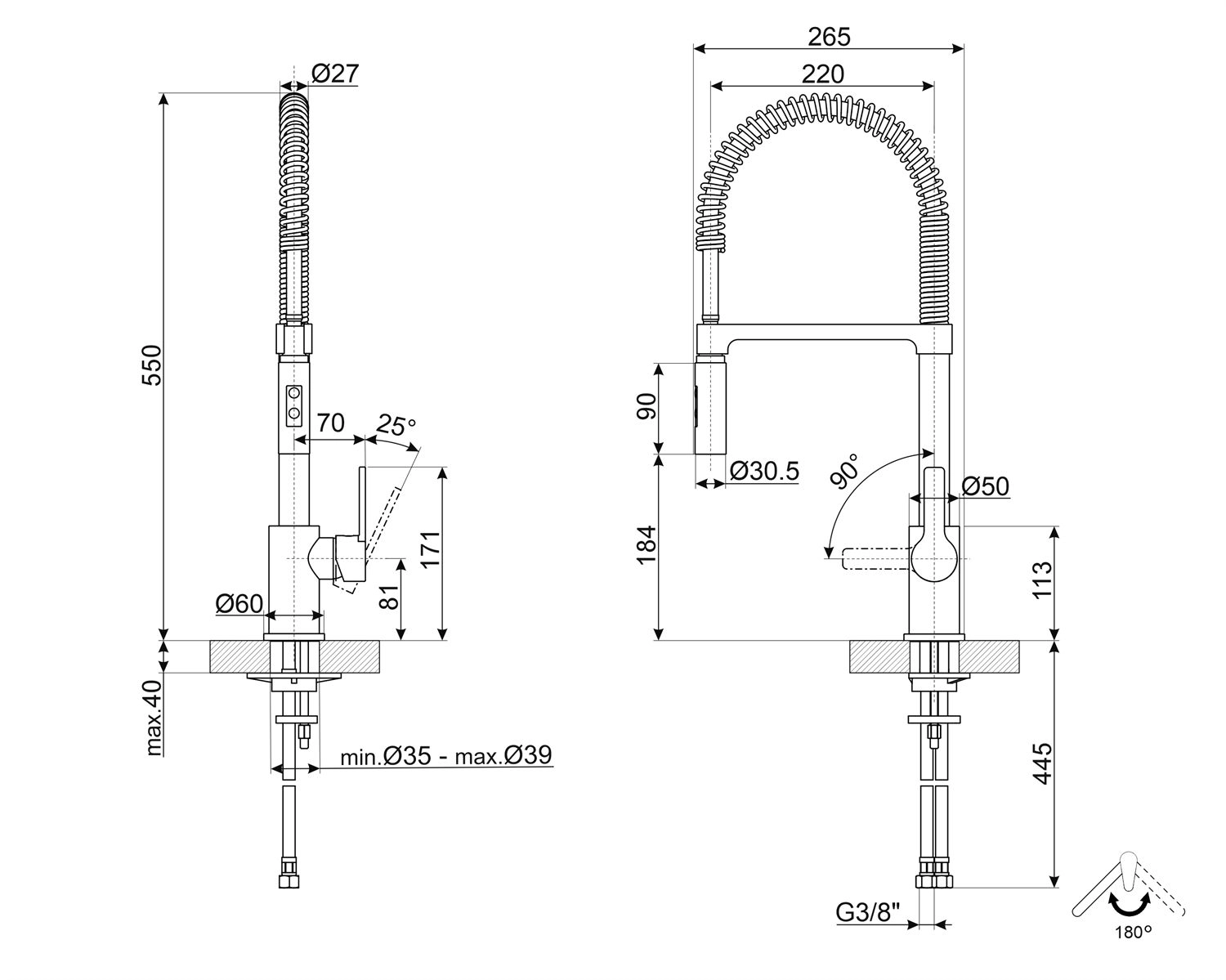 В основе смесителя MID5CR лежит его прочная конструкция, созданная для того, чтобы выдерживать ежедневные требования загруженной кухни. Керамический дисковый клапан обеспечивает длительную работу без утечек, а гибкий шланг обеспечивает универсальный поворот на 360 градусов для легкого доступа к любому уголку вашей раковины. Функция двойной струи позволяет переключаться между мощной струей и широкой струей, облегчая выполнение самых разных задач, от наполнения кастрюль до мытья посуды.