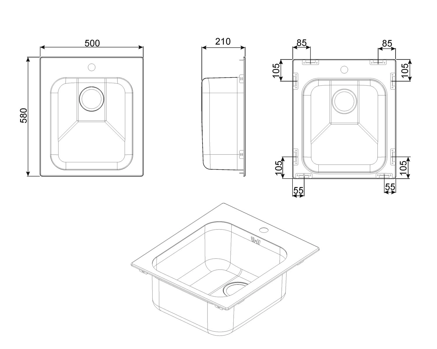 - Глубокая чаша: Просторная чаша обеспечивает комфортное мытьё посуды, включая крупные кастрюли и сковороды.